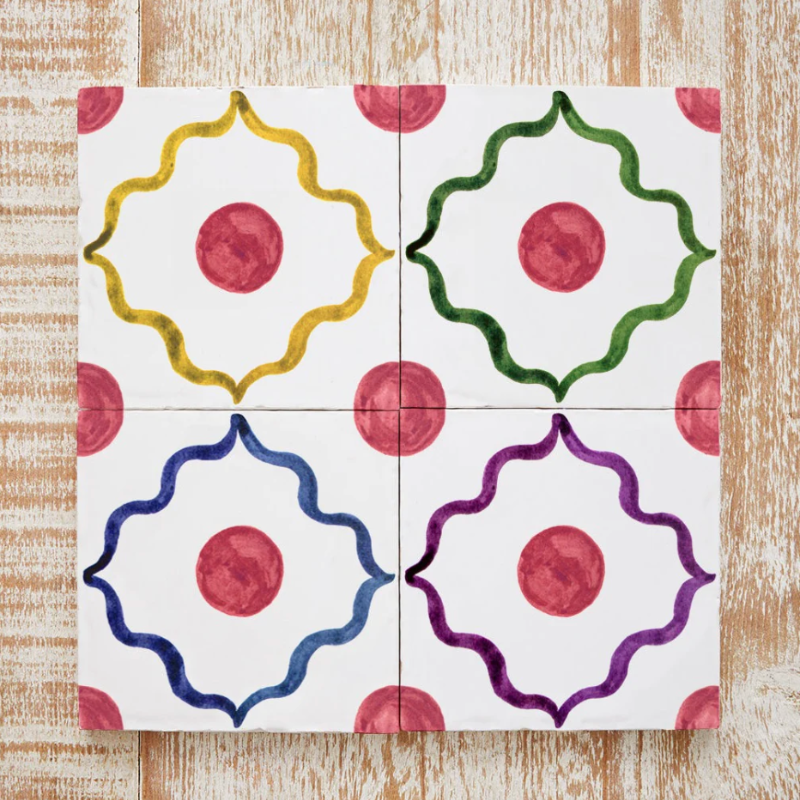 Paying homage to my heritage, this collection is inspired by the patterns I documented in Beirut, the vibrant capital of Lebanon. The curved shapes and rich colours capture the city’s energy and vitality, while the generous scale of the tile design echoes the warmth and hospitality of its people. Thoughtfully created to be mixed and matched with the Corner Tiles, the collection is available in four distinct colour ways: berry, mint, peach and blue.