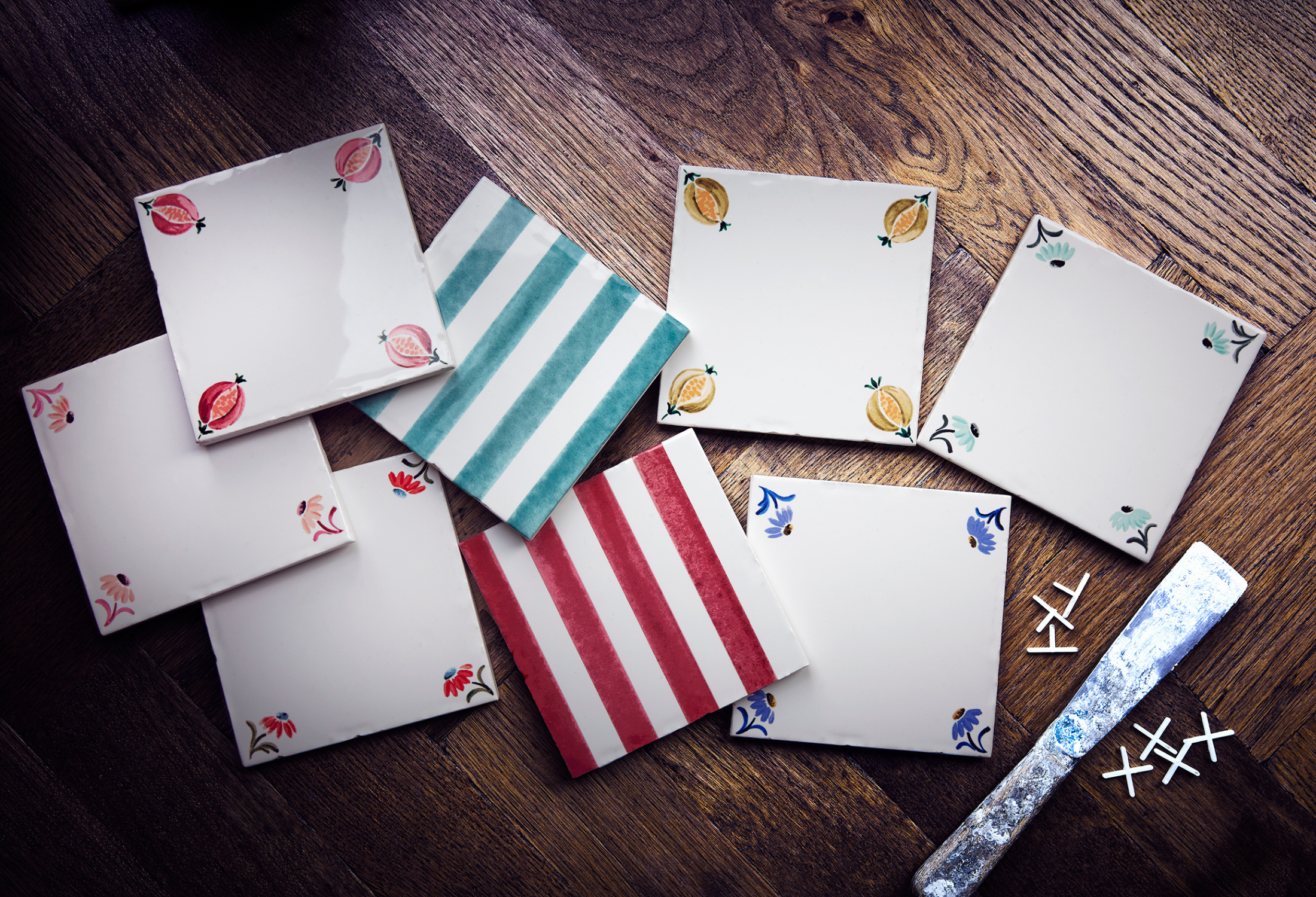 For a truly unique look, consider dividing the Daisy Tiles with our crisp white Tile Trims, or alternate the designs with our Pinstripe Tiles in coordinating colours or Plain Tiles. You can even position them in a diamond pattern as shown in the photo below. The possibilities are endless for creating a personalized and timeless design.