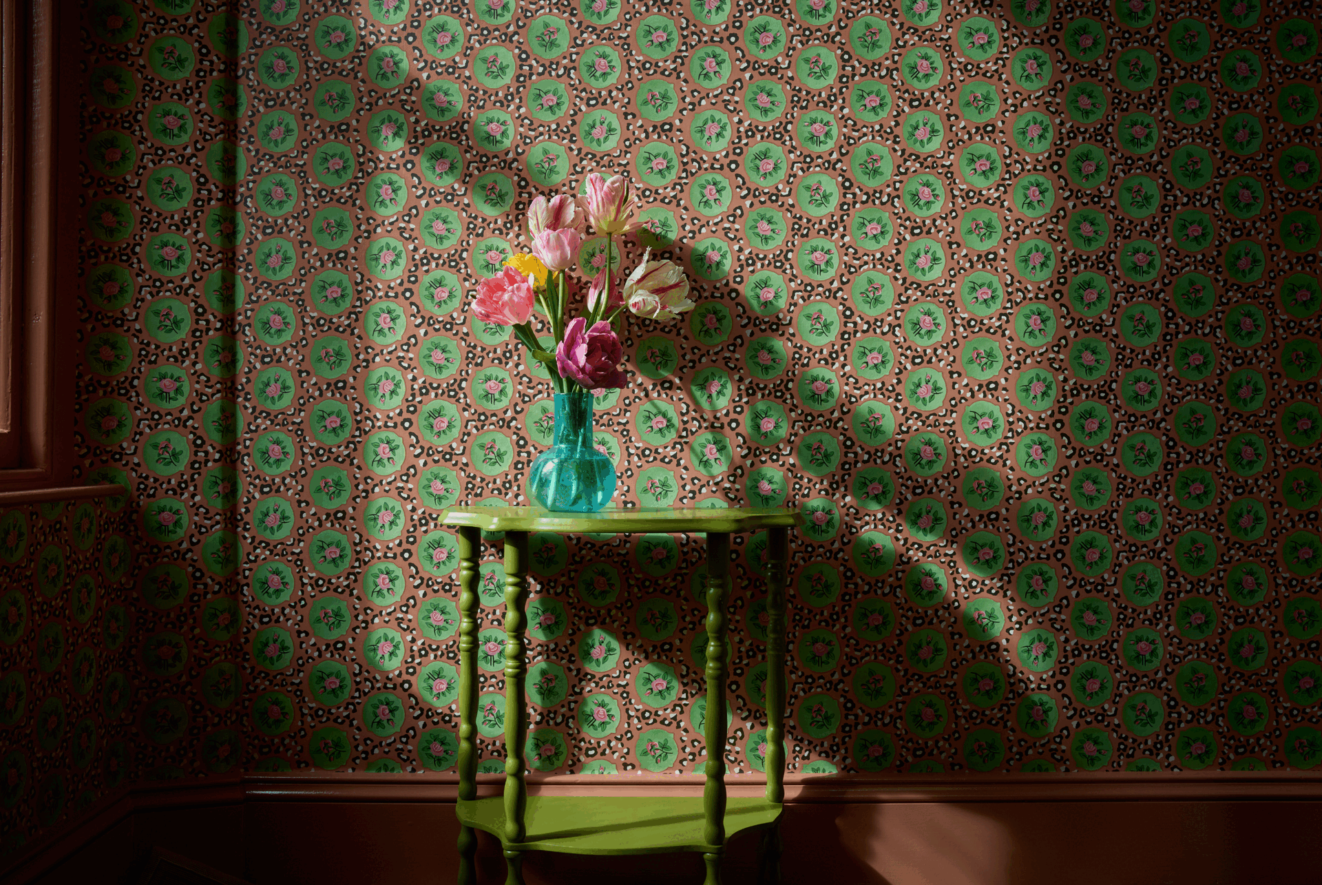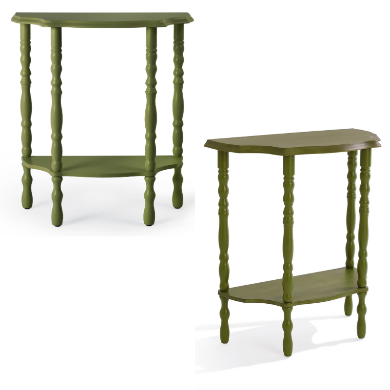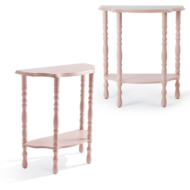 Each table stands on bobbin legs, turned by hand for that timeless, tactile feel. Available in two colour ways — a warm rose pink and an earthy khaki green — they offer two distinct moods: one joyful and romantic, the other grounding and serene. Together, they speak the same design language of contrast and harmony that runs through everything we make.