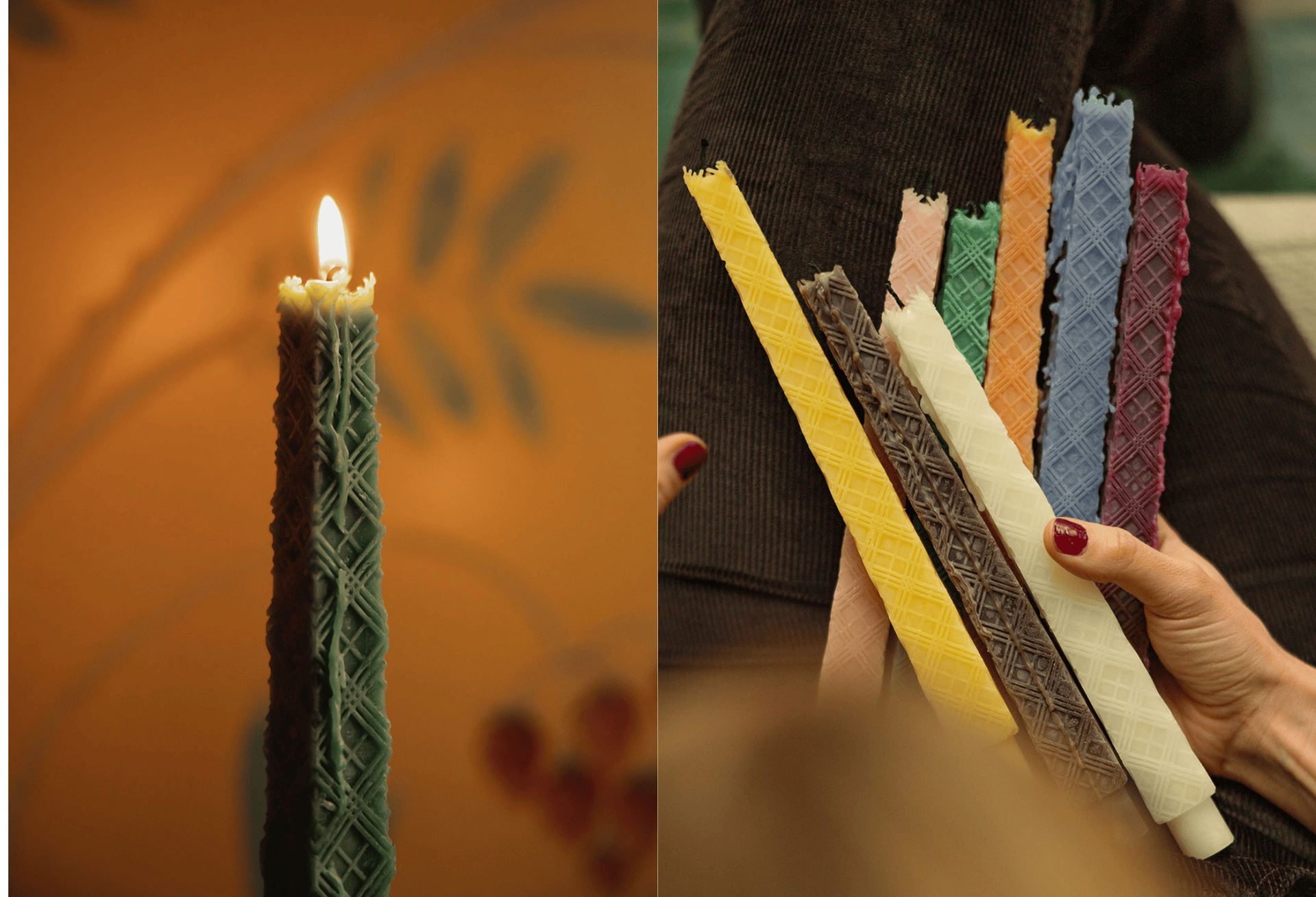 Crafted from natural, non-toxic beeswax, they burn slowly and cleanly, releasing a warm, honeyed glow. Perfect for a breakfast table bathed in morning light or an evening dinner party full of atmosphere, these candles bring depth, colour and quiet magic to every moment.